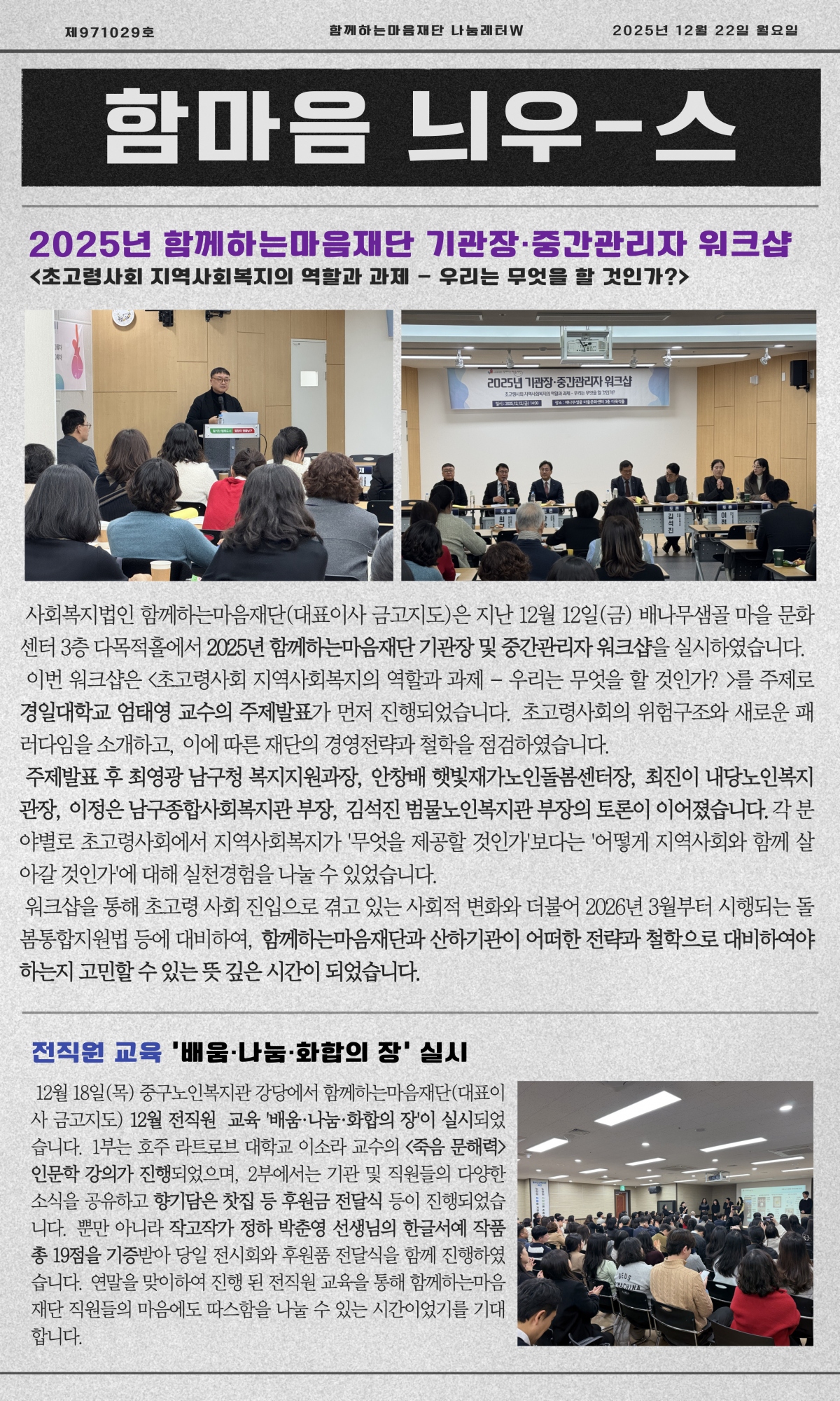 67호 소식(범물노인복지관 김창희 영양사님 인터뷰) 다시보기 : 사회복지법인 함께하는마음재단